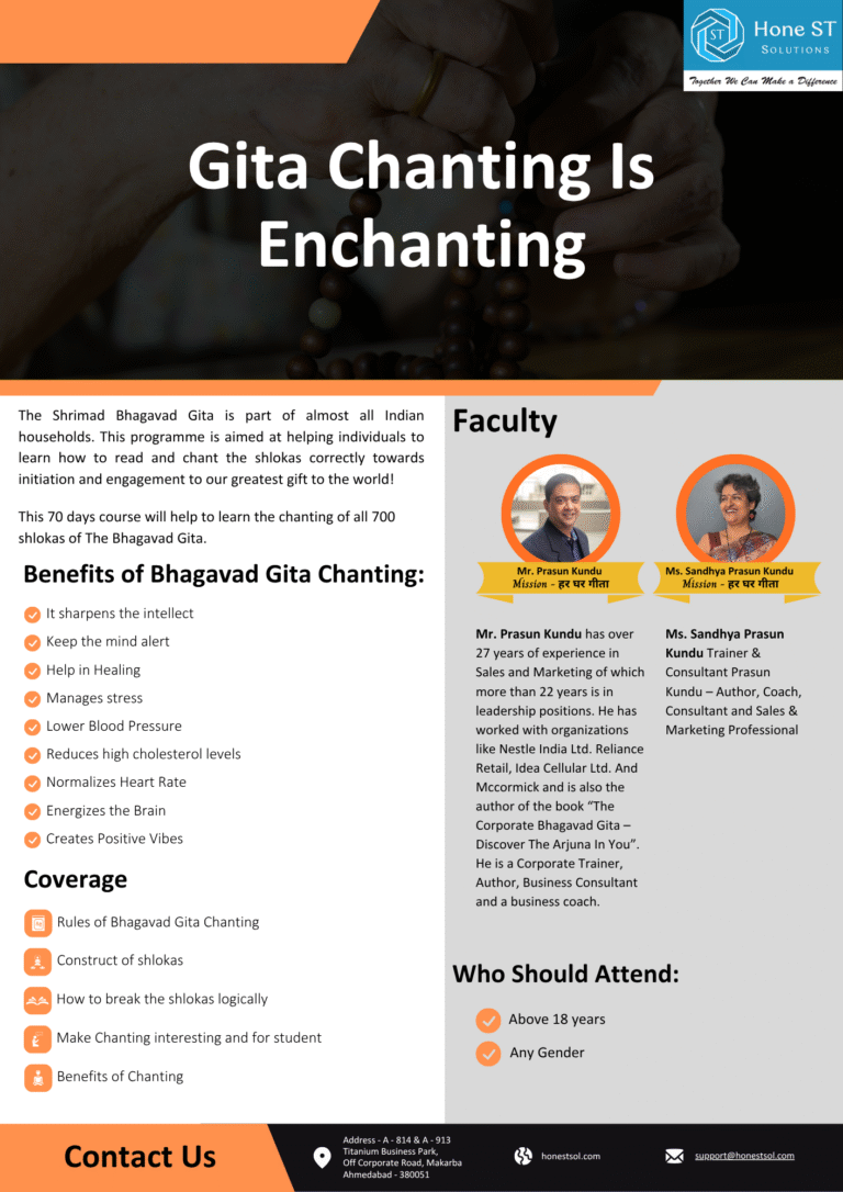 The Shrimad Bhagavad Gita is part of almost all Indian households. This programme is aimed at helping individuals to learn how to read and chant the shlokas correctly towards initiation and engagement to our greatest gift to the world!