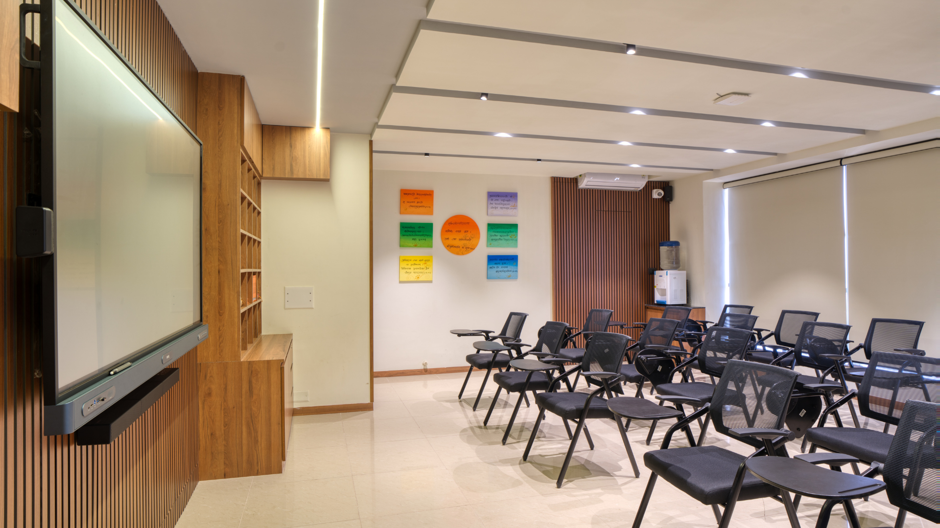 Ideal for skill-based training, certification programs, coaching batches or corporate development sessions. Comfortable seating, smart display and whiteboard support make single-day training easy to run.